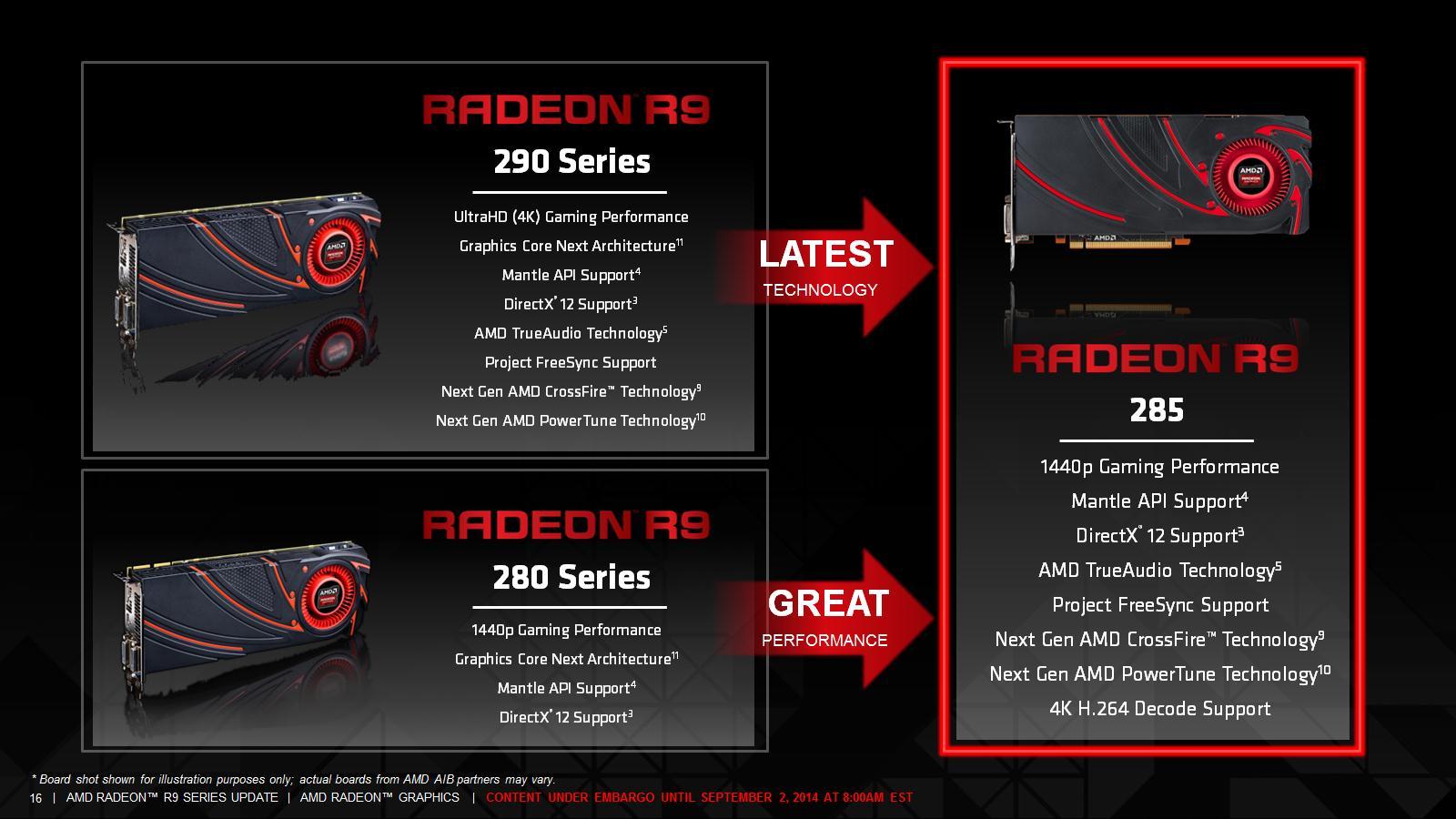 AMD si zvolila lehce schizofrenický způsob prezentace tohoto produktu: Na jednu stranu by jej chtěla servírovat jen jako náhradu výše jmenovaných Radeonů bez přílišného rozebírání detailů a architektonických změn, které chce zdůraznit až při uvedení nové generace produktů - na stranu druhou je výrobci jasné, že bez odhalení těchto změn nebude zákazník vědět, v čem je vlastně tato novinka lepší než předchůdce nebo produkt konkurence.