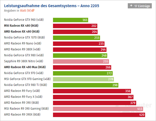 Překvapení a ne v tom pozitivním slova smyslu, přinesla některé měření spotřeby. Proč jsou výsledky některých recenzí lepší a jiné horší, nepřímo vysvětlují měření webu ComputerBase, který spotřebu netestoval v jedné hře, ale ve čtyřech různých titulech: