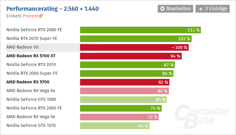 Pokud jde o srovnání s Radeonem VII, které jsem zmínil v tehdejším článku, dopadl Radeon RX 5700 XT rovněž mírně nad očekávání - podle ComputerBase dosahuje v průměru 94 % jeho výkonu.