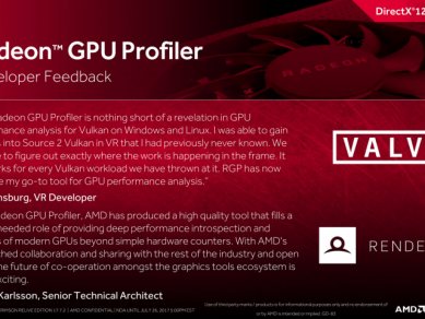 Nové vydání ovladačů přináší i řadu novinek cílených na profesionály. Za vypíchnutí stojí Radeon GPU Profiler, kterým jim umožňuje přesně sledovat dění na úrovni vláken a analyzovat, která část kódu jakým způsobem zaměstnává hardware, což dotázaní vývojáři vnímají jako otevření černé skříňky, které jim odkrývá mj. prostor pro výkonnostní optimalizace.