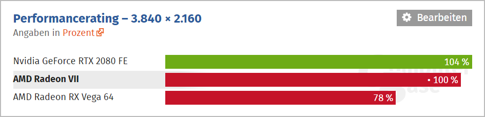 Redakce webu ComputerBase přišla se zajímavým nápadem. Připravila krátký test Radeonu VII zaměřený pouze na nové hry většinou podporující i DirectX 12. Zatímco v původní recenzi téhož webu s mixem různě starých her dosahovala GeForce RTX 2080 FE výkonu 9,3 % nad Radeonem VII, v nových hrách se náskok GeForce RTX 2080 FE snížil na 3,8 %.
