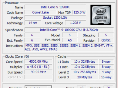 ASUS mi desku zaslal společně s desetijádrovým procesorem Intel Core i9-10900K a paměťovým kitem G.Skill TridentZ NEO 2x8GB DDR4-3800 CL16. Procesor i paměti jsem jsem testoval v továrním nastavení, tedy default pro CPU a XMP profil u RAM, přetaktování jsem zkusil také, ale snažil jsem se najít nastavení, které prošlo všemi testy a ne jen jedním benchmarkem.