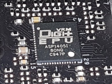 Na desce jsem ke svému překvapení našel ještě jeden ASP14051 kontrolér, který řídí jen dvě ON Semiconductor NCP302045 45A pwrstage, ty pak napájí VCCSI sběrnici v procesoru. Pokud vás zajímavá detailnější pohled na napájecí kaskádu, doporučím se podívat na následující video.