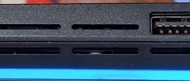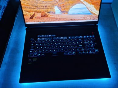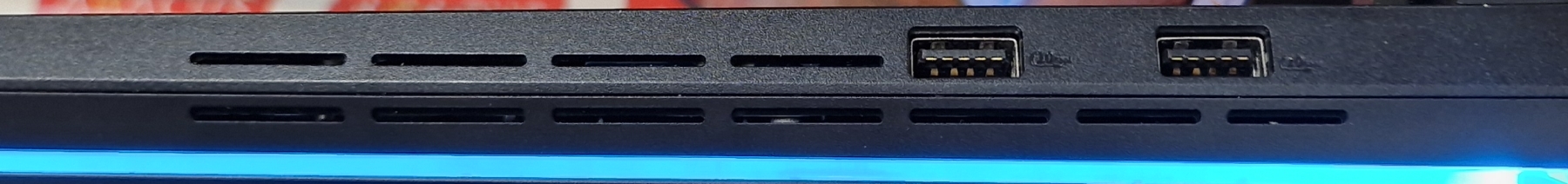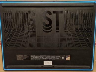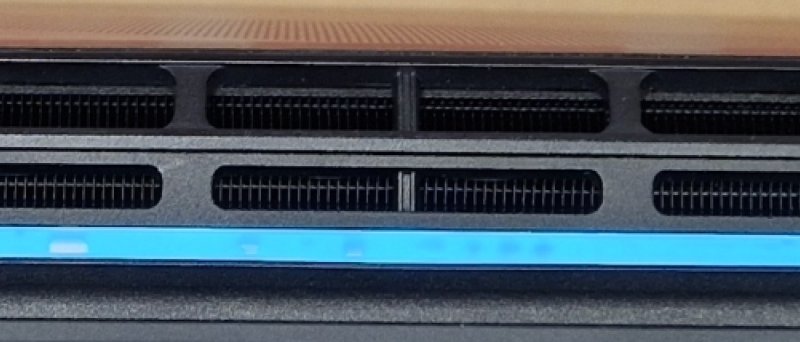 Na zadní straně notebooku najdeme hlavní výdech chlazení, také zde můžeme vidět část RGB LED pásku, který je na celé spodní straně notebooku