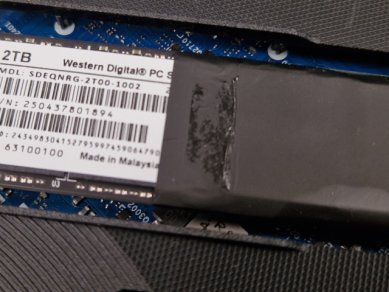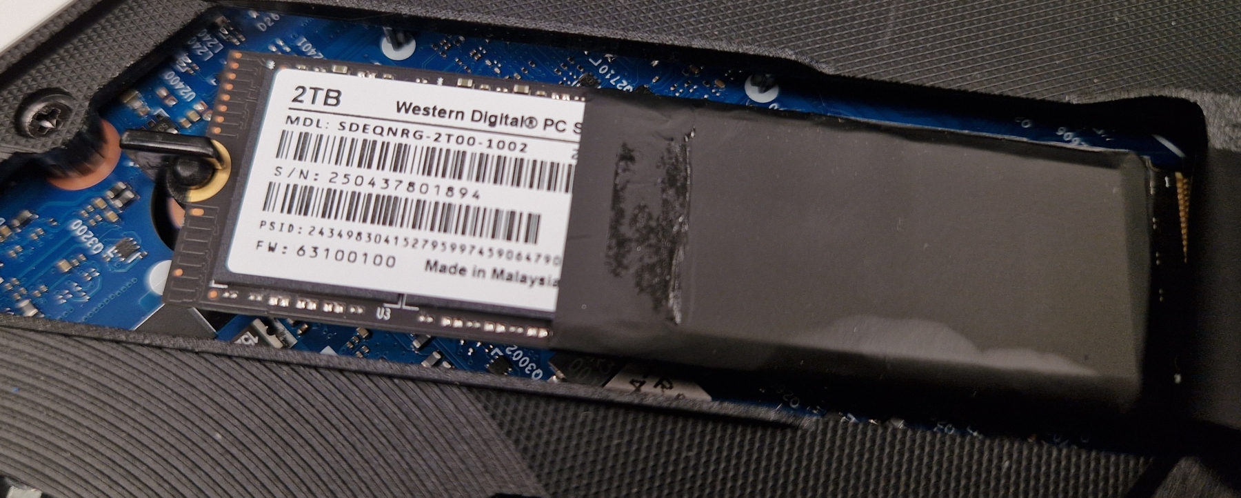 V testovacím kusu bylo osazeno jedno WD PC SN8000S 2TB PCIe Gen4 x4 NVMe SSD, přičemž notebook podporuje i softwarový RAID skrze Intelí VROC.