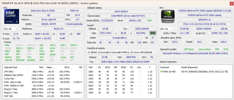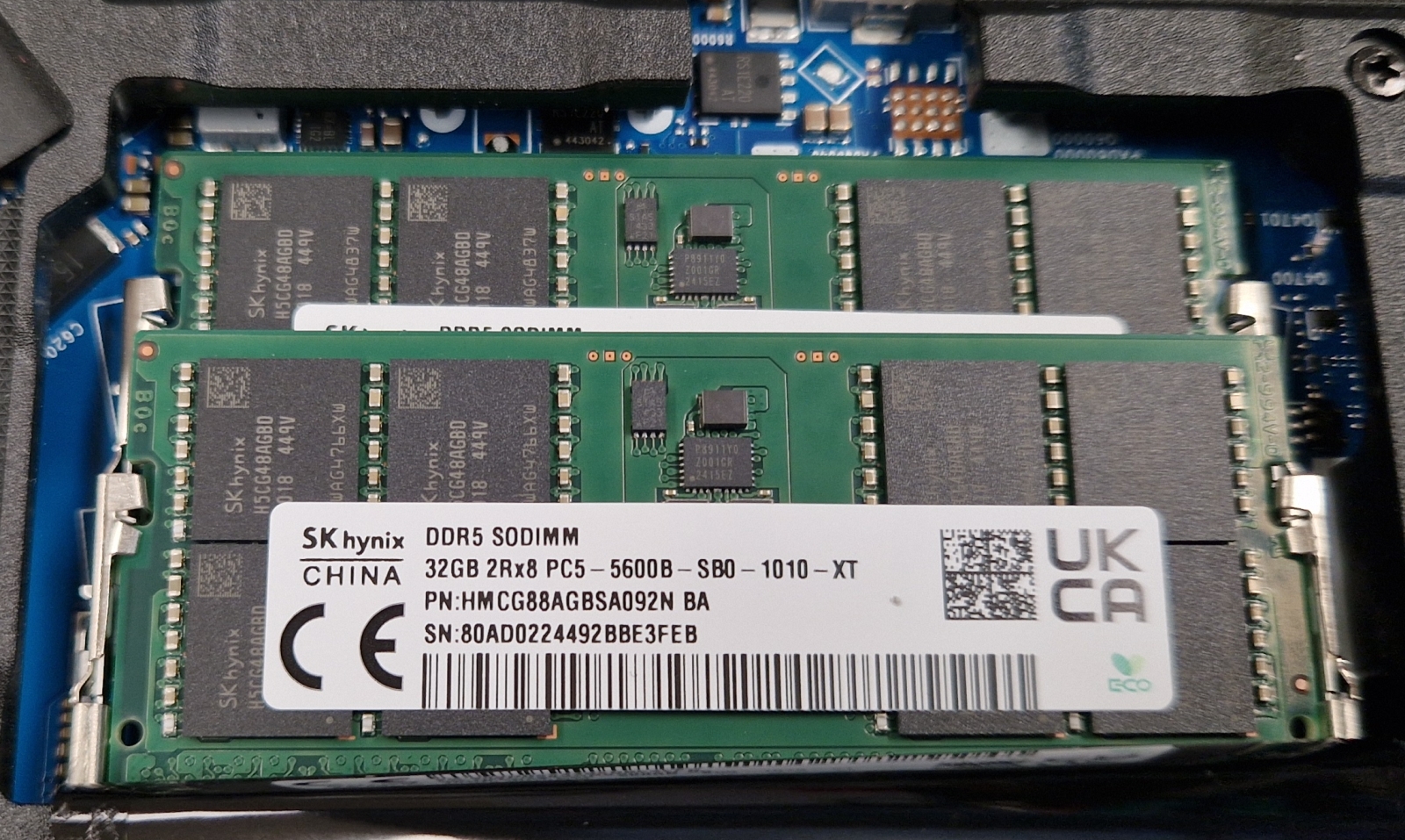 Osazeny byly dva 32GB DDR5-5600 CL46 moduly, další upgrade je pak 2x48GB RAM, což je aktuální možné maximum.