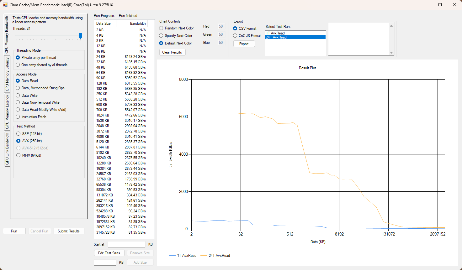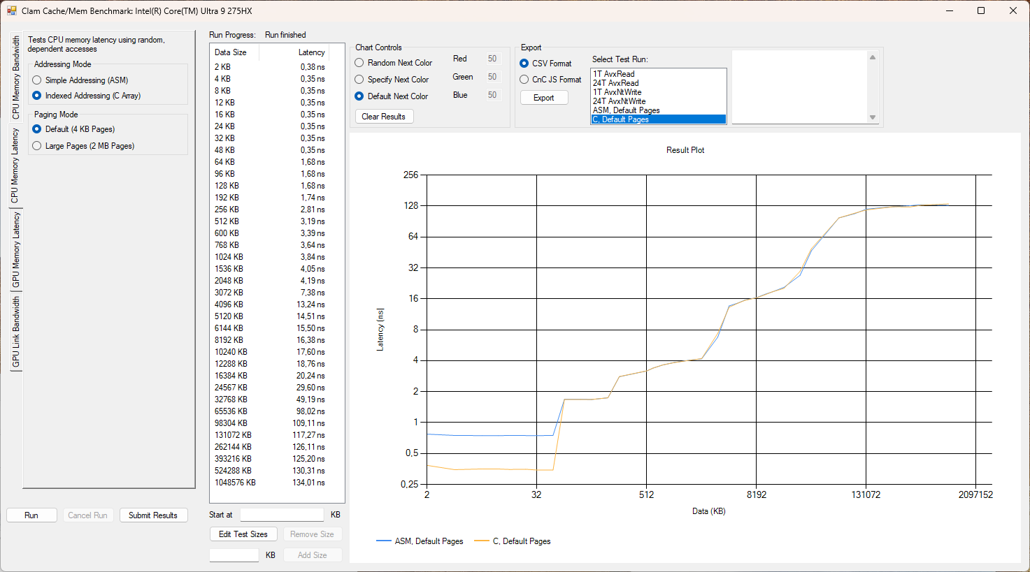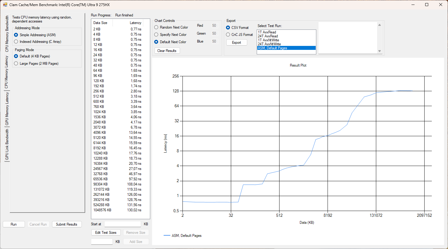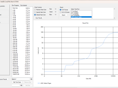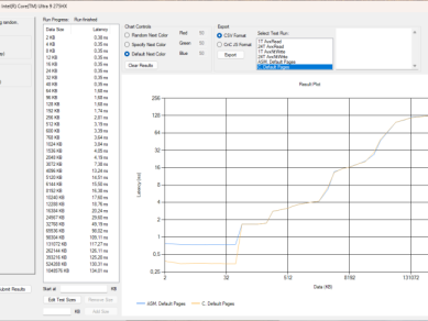 Tato kapitola je aktuálně novinkou, chtěl jsem totiž nějak lépe testovat paměťovou propustnost a také latence pamětí. To se všeobecně netestuje zrovna snadno a test v AIDA64 je takový velmi rychlý, nicméně na rychlé ověření, že jsou paměti nastavené správně postačí. Využívám tak programu Microbenchmark v GUI variantě, která kreslí i veselé grafy. Program umí testovat čtení i zápis do paměti mnoha způsoby, nechybí i testování latencí RAM.