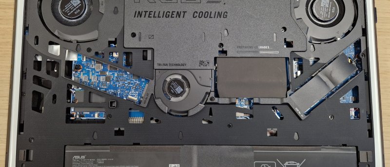 Velmi si cením toho, že ASUS vylepšil upgradovatelnost a do jité míry opravitelnost tohoto modelu. To, že nemusím použít vlastně žádné nářadí pro výměnu RAM a SSD je velmi pěkné a připomíná to některé business class stroje nejmenovaného výrobce (nápověda: dvě písmena). Přístup k WiFi kartě je sice horší, ale to není příliš často měněná komponenta a stačí vyšroubovat několik šroubků a vyndat vnitřní plastový skelet.