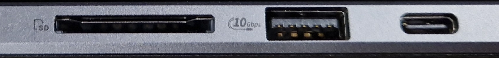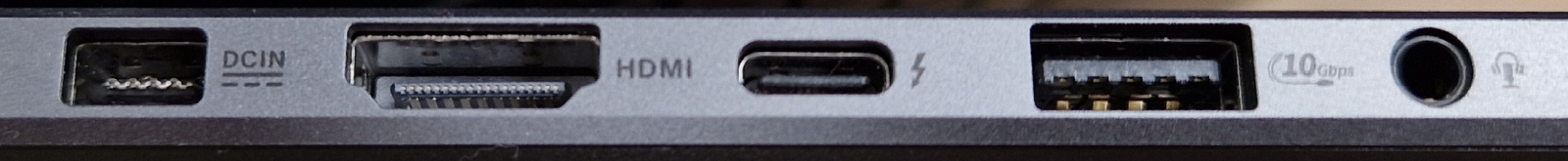 Portová výbava je přijatelná na relativně žiletkový stroj, porty se nachází na stranách notebooku. Na levé straně najdeme napájecí konektor, HDMI 2.1 výstup, USB-C s podporou ThunderBolt 5, USB-A 10Gb/s a 3,5mm audio jack.