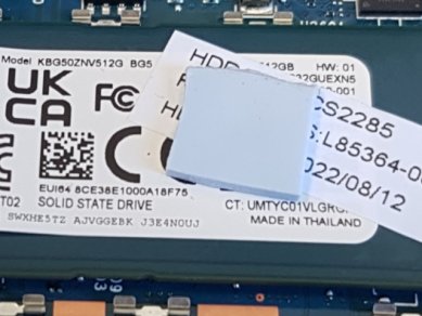 Vedle M.2 2280 slotu najdeme další M.2 slot, ten má překvapivě taktéž teplovodivý polštářek odvádějící teplo do spodního víka notebooku. WiFi modul je tak vyměnitelný a chlazený, osazen byl čipset Qualcomm FastConnect 6900, podporuje samozřejmě nejnovější standard WiFi 6E.