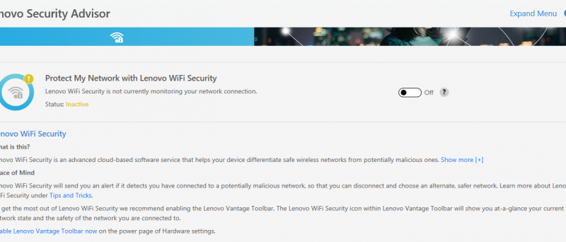 Lenovo WiFi Security je služba, která má údajně chránit Váš ThinkPad před zlými WiFi sítěmi. Zahlédl jsem samozřejmě klíčová slova „cloud“ a „service“. Službu jsem tedy netestoval a vlastně ani nevím, jak přesně funguje.