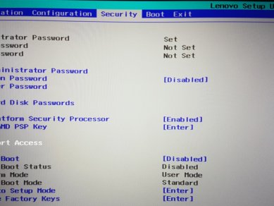 Yoga 7 Slim si moc nechtěla povídat s mou obstarožní VGA capture kartou a tak jsem pořídil několikk fotek telefonem. V BIOSu toho můžeme nastavit překvapivě hodně. Pobavila mně i informace o Windows licenci.