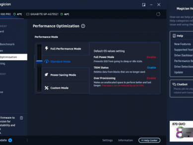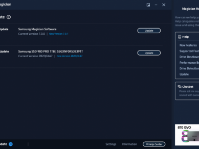 Podobně jako ostatní výrobci, i Samsung má vlastní software na správu SSD, aktualizaci firmwaru a tak. Česky mu můžeme říkat třeba Samsung Kouzelník. Oproti ostatním výrobcům je Magician takový nejvíce vyšperkovaný a designově konzistentní, nevypadá tak šíleně pouťově a zároveň nepřipomíná software z roku 1995.