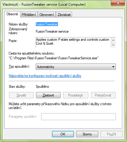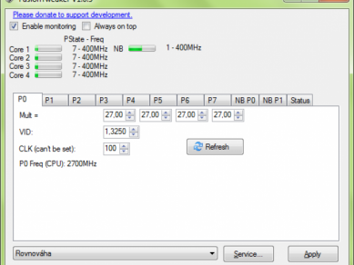 Jakmile najdete frekvence a napětí, na kterých procesor běží stabilně a chcete aby se aplikovaly vždy po startu Windows stačí kliknout na tlačítko Service a zaškrtnout checkbox „Make custom P-state settings permanent“. FusionTweaker pak vytvoří službu ve Windows, která toto nastavení změní ihned po nastartování. Toto doporučuji dělat v momentě, kdy je Váš notebook opravdu stabilní, jinak budete muset do nouzového režimu a službu přepnout na ruční spouštění. Samozřejmě je důležité hlídat si teploty procesoru v zátěži, nesmíme přestřelit 100°C, po dosažení této teploty se notebook vypne.