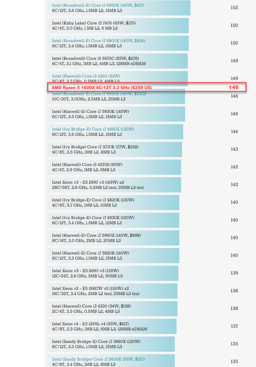 $259 95W Ryzen 5 1600X dorovnal $434 140W Core i7 6800K