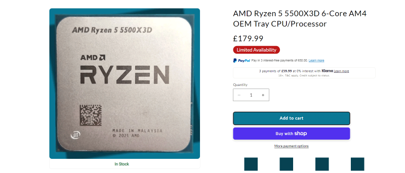 Zůstává nicméně otázkou, zda je nabídka PC Tec důsledkem chystaného oficiálního zařazení Ryzen 5 5500X3D na evropský trh, nebo jde vlastní aktivitu prodejce, který procesory objednal z Číny a přeprodává je na vlastním e-shopu. Z poznámky „Not sold by UK retailers. Only sold at PC Tec UK.“ to spíše vypadá na druhou možnost.