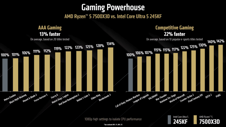 AMD Ryzen 5 7500X3D vs Intel Core Ultra 5 245K (AMD)