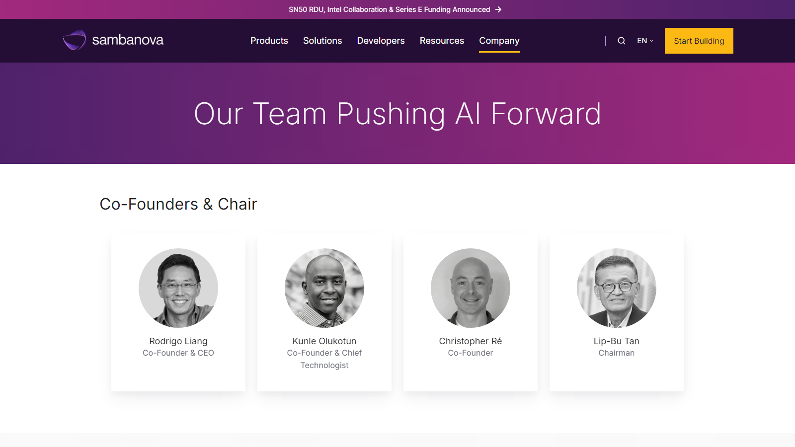 Lip-Bu Tan je zakladatel a dlouholetý předseda investiční společnosti Walden International, která byla jedním ze zakládajících investorů SambaNova. Walden International uskutečnila prvotní investici v hodnotě zhruba $56 milionů a následně se účastnila i v dalším financování společnosti. Díky tomu Tan získal místo ve vedení SambaNova již v rané fázi vzniku startupu. V květnu 2024 se stal výkonným předsedou (Executive Chaitman) této společnosti, jen o rok později byl jmenován CEO Intelu. Tím se spojení ještě zúžilo, neboť divize Intel Capital, investiční divize Intelu, která spadá pod Tanovy pravomoce, je rovněž investorem SambaNova.