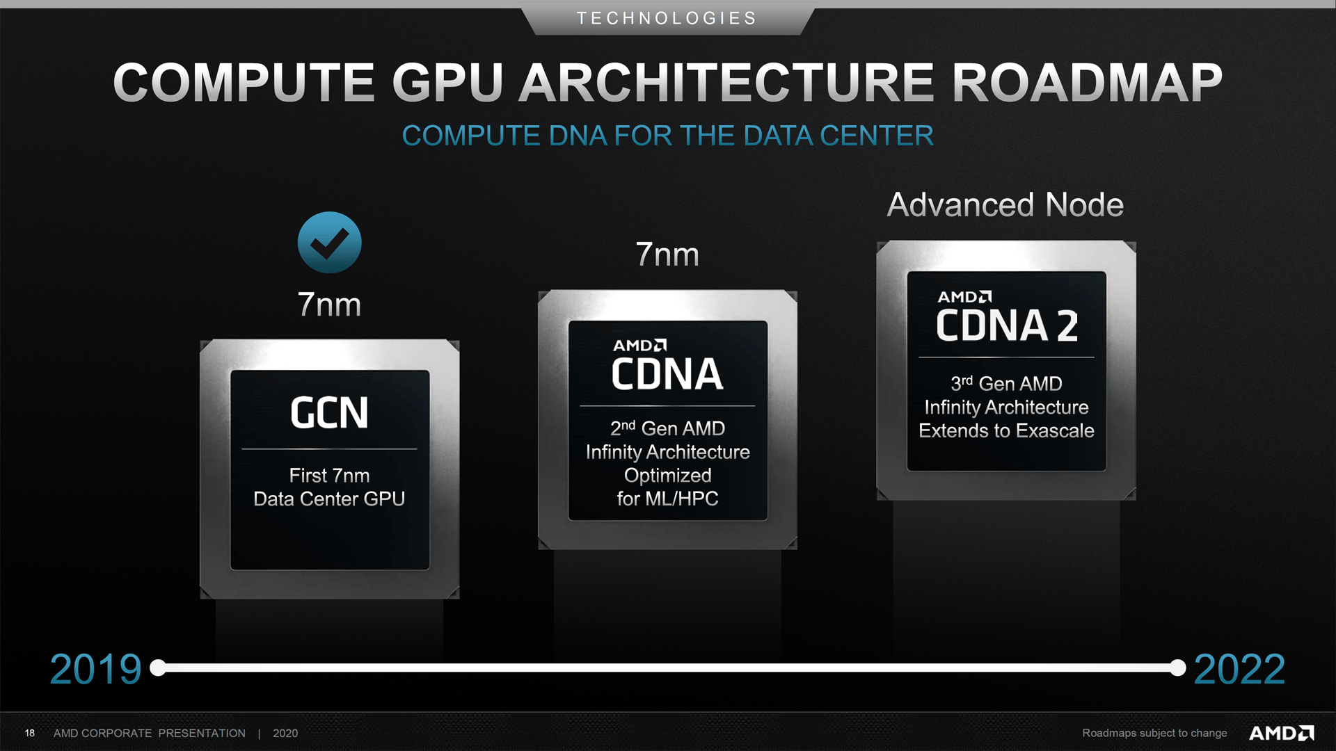 Nyní AMD zveřejnila aktualizované roadmapy. Přestože je opět leckteré zdroje vykládají po svém, o jednoznačnosti se mluvit nedá. Respektive dá, ale jen částečně. Zatímco v tzv. Compute / Data Center roadmap jasně uvádí výrobní procesy a specifikuje, že serverový Zen 3 bude 7nm…