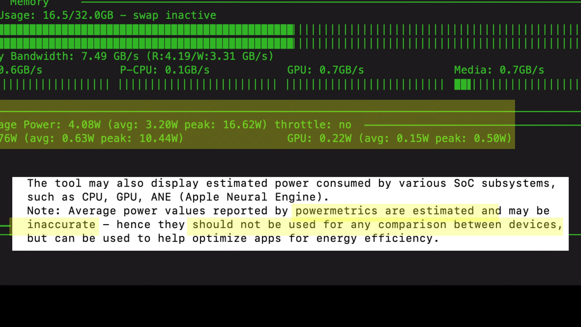 Powermetrics uvádí, že může být nepřesné a nemá být používáno ke srovnání spotřeby s jinými platformami
