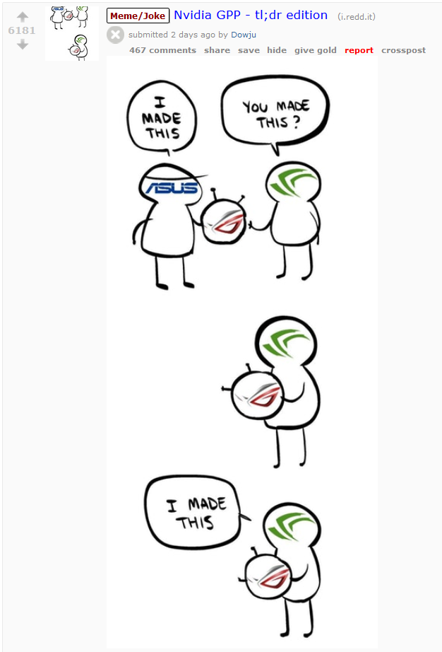 Některé značky tedy preferují lhaní zákazníkům, než narušením vztahu s Nvidií a informováním o detailech GeForce Partner Program. Samotný GPP i následující události vyústily v uživatelskou výzvu k bojkotu produktů grafických karet společností Asus, Gigabyte a MSI. Byť se asi nedozvíme, jestli negativní dopad této výzvy na objemy prodejů převáží přínosy GPP, lze s jistotou říct, že podobnou nevoli mezi zákazníky ve vztahu ke konkrétním značkám jistě marketingová oddělení těchto značek nevidí ráda.