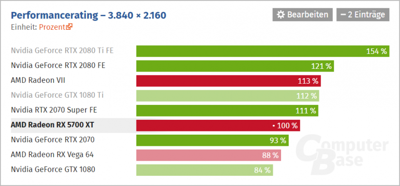 To znamená, že nárůsty výkonu oproti Radeonu RX 5700 XT by měly dosahovat přinejmenším kolem 70 % a přinejlepším kolem 110 %. Řekněme, že v průměru přinese o 85-90 % výkonu navíc (samozřejmě v situacích limitovaných výkonem grafické karty, nikoli procesoru). V takovém scénáři (např. 4k rozlišení) dosahuje GeForce RTX 2080 Ti o 54 % vyššího výkonu než Radeon RX 5700 XT: