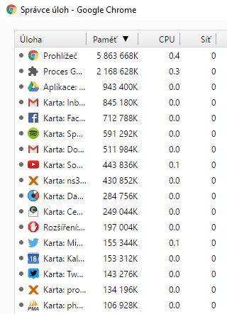 Aaa redmarx v opo, jsem v soku. Ja jsem se 16GB ram zatim stastnej, ale zacinam citit, ze do budoucna je to malo. Mam teda i takovy blbustky, jako 3GB SSD cache, chrome atd. Chapu, ze Chrome neni idealni a tezce jsem si na nej zvykl, i kdyz zkousim prechazet aspon na Edge, Chrome ma stale sve Google kouzlo hlavne v kombinaci s androidim telefonem. Her mam stovky a zvykl jsem si zapinat vzdy jen ten launcher, kterej potrebuju, pac uz mam, krome klasiky Steamu, jeste Origin, Uplay, Bethesda a Epic launcher, Battle.net a ty jednorazovky WarThunder, WoT, World of Warships. Je to mor.
