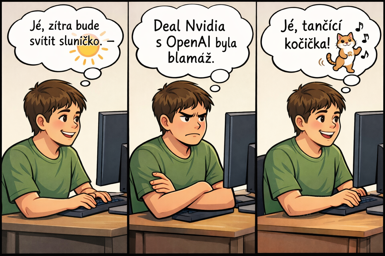 Možná pamatujete na záříjové prohlášení Nvidie a OpenAI, ve kterém ohlašují spolupráci v hodnotě až $100 miliard dolarů. O měsíc později vyšlo najevo, že OpenAI byla nespokojená s nabídkami Nvidie a již od začátku roku 2025 hledala alternativy. V polovině června se začala rýsovat spolupráce s Googlem, následně však do situace vstoupil CEO Nvidie Jen-Hsun Huang a dal OpenAI nabídku, ze které vzešlo ono stamiliardové memorandum.