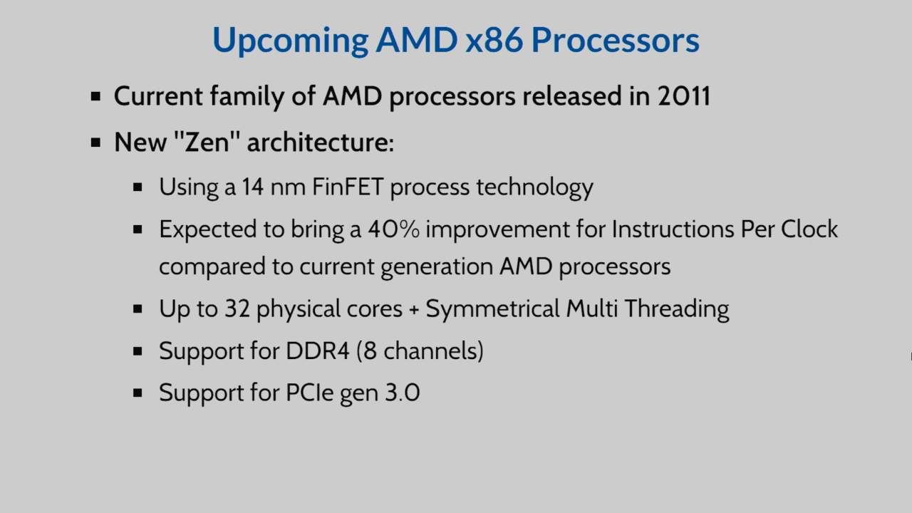 - až 8jádrový Zen pro desktop, AM4 socket - konec roku 2016